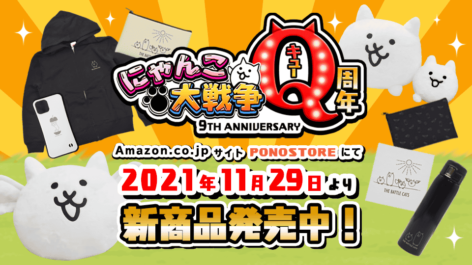 Q周年を記念して、AmazonサイトのPONOSTOREにて「にゃんこ大戦争」の新作グッズを発売!