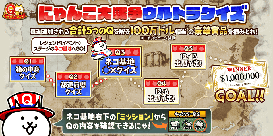 ・ステージクリアでネコカン 20 個をゲットできるQ周年記念「バースデープレゼント!」ステージ開催!