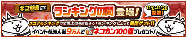 さらに!Q周年記念イベント期間中に「ランキングの間」イベント参加人数が9万人以上達成で、ユーザー全員にネコカンを100個プレゼント!