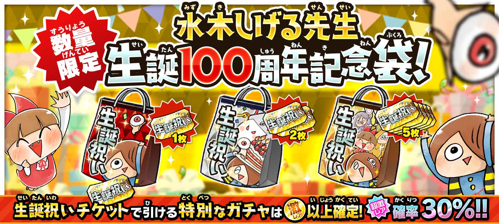 超激レアの出現確率30%!「水木しげる先生 生誕祝いガチャ」!
