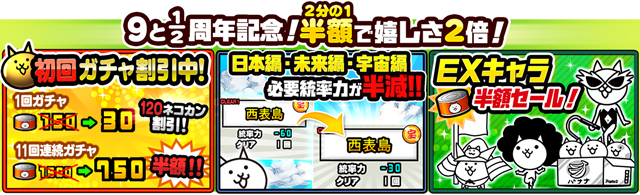 また、イベント期間中「EX」キャラの購入に必要なネコカンの数が半額に!