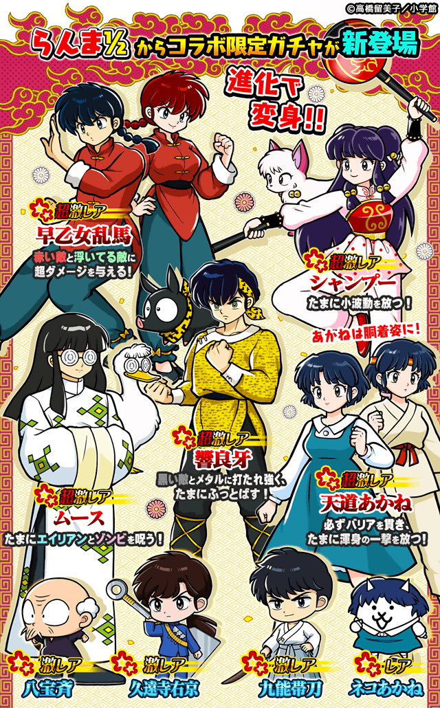 コラボ限定キャラクターが出現する『らんま1/2』ガチャを開催いたします。