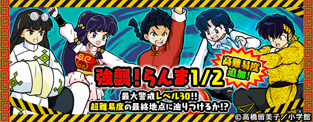 『らんま1/2』のコラボキャラたち全員が登場する高難易度ステージ「強襲!らんま1/2」を開催いたします。 ステージレベルは最大30! クリアする程強くなる敵が立ちはだかります。