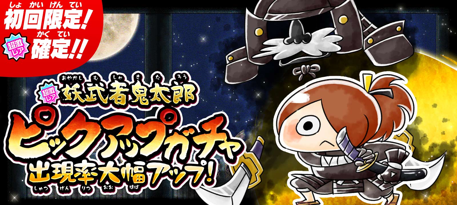 『ゆるゲゲオリジナル』キャラクター新超激レア「妖武者鬼太郎」の出現確率がアップする「妖武者鬼太郎ピックアップガチャ」を開催いたします。