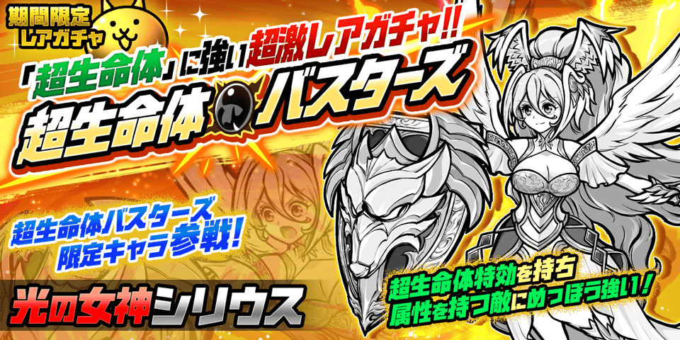 新たなる期間限定レアガチャ「超生命体バスターズ」登場!限定キャラクター「光の女神シリウス」が参戦!