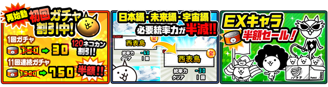 また、「EX」キャラの半額セールと必要統率力の半減も引き続き開催中!
