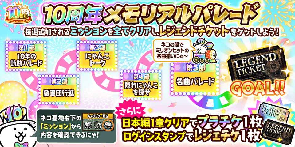 ・「日本編」第 1 章クリアでプラチナチケットを 1 枚ゲットできる10周年記念ミッション開催!