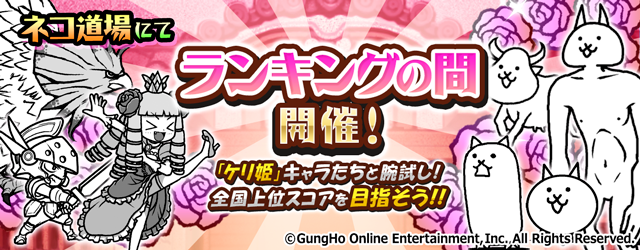 ネコ道場「ランキングの間」にてコラボ期間限定のランキングイベント「襲来!ケリ姫軍団」を開催いたします。