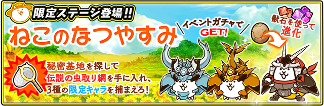 「伝説の虫取り網」を集めて限定EXキャラ「古びたタマゴ:N202」「カブトネコ」「クワガタネコ」などをゲットしましょう!