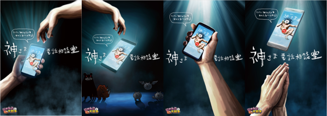 ・企画内容:神さま電話相談室「LINE」公式アカウントを友だち追加することで、 誰でも簡単に神さまにゲーム攻略の相談をすることができる。