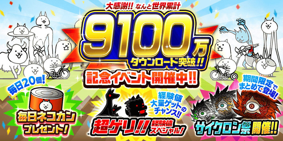 ・イベント開催期間中に「にゃんこ大戦争」アプリを起動すれば、毎日ネコカン20個プレゼント!
