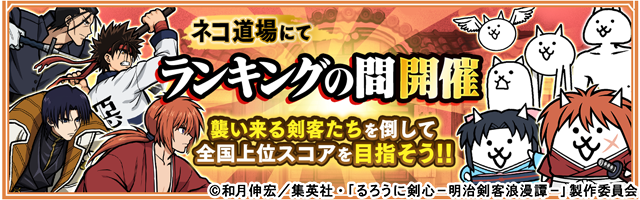 ネコ道場「ランキングの間」にてコラボ期間限定のランキングイベント「明治剣客浪漫大会」を開催いたします。