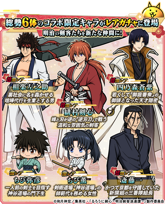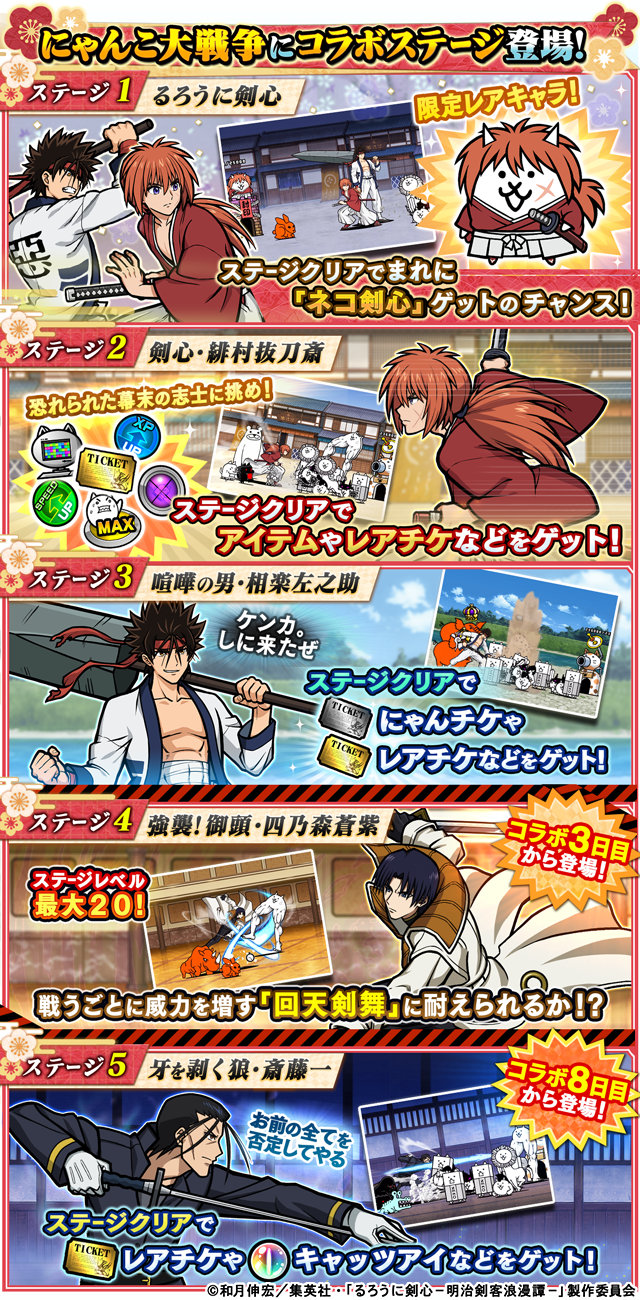 ステージ「るろうに剣心」をクリアで「ネコ剣心」をゲットのチャンス!