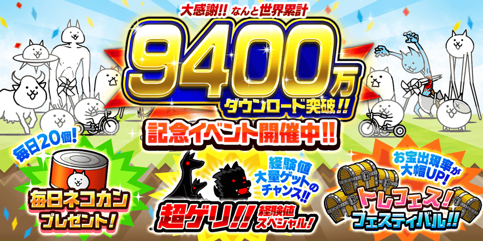 ・イベント開催期間中に「にゃんこ大戦争」アプリを起動すれば、毎日ネコカン20個プレゼント!