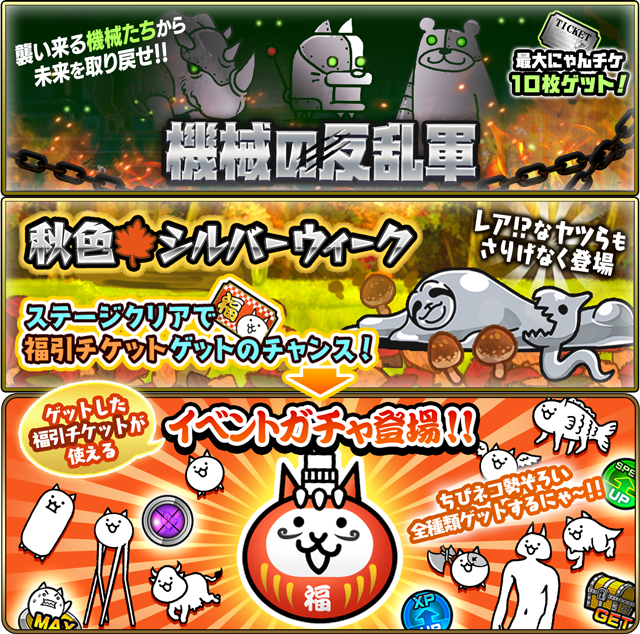 「機械の反乱軍」はステージクリアで最大10枚のにゃんこチケットが手に入ります。