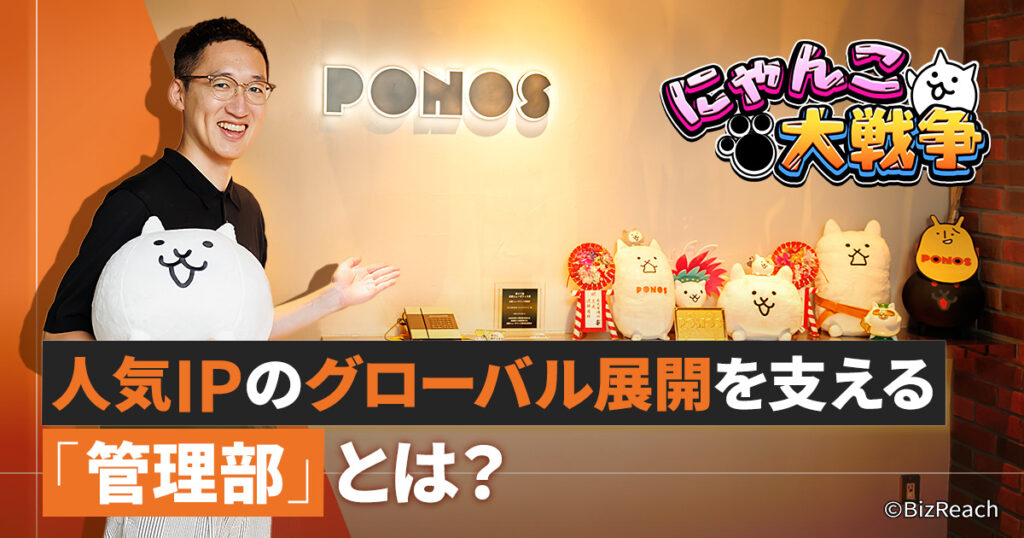 ポノス株式会社は「ななめ上を、行け」をコーポレートスローガンに、ゲームを通じたエンターテインメントの可能性を追求し続けています。リリースから13年目を迎える人気ゲーム「にゃんこ大戦争」などのIP(知的財産)を軸に、国内外で存在感を高めているいま、バックオフィスを担う「管理部」の重要性も高まっています。採用を強化するにあたり、管理部で働く意義や得られる経験について、管理部部長の関博之氏にお話を伺いました。