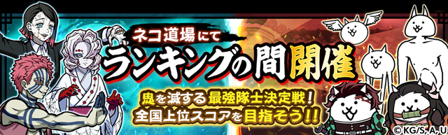 ネコ道場「ランキングの間」にてコラボ期間限定のランキングイベント「特別招集!最強隊士決定戦」を開催いたします。アニメ「鬼滅の刃」のキャラクターが多数登場する腕試しイベントとなっております。