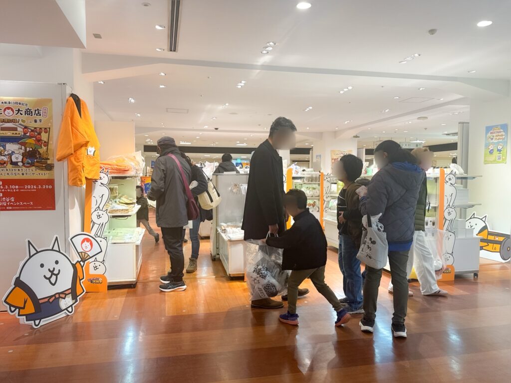 新作グッズをはじめ、ぬいぐるみや雑貨など約600点の「にゃんこ」グッズが並び、来場者が商品を手に取りながらお買い物を楽しむ様子が見られました。
