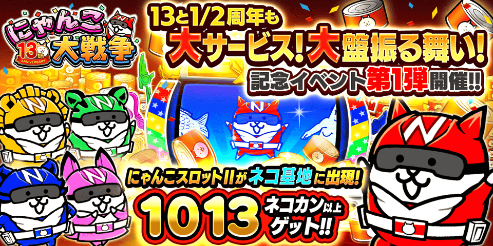 『にゃんこ大戦争』13と1/2周年記念イベント第1弾開催のお知らせ