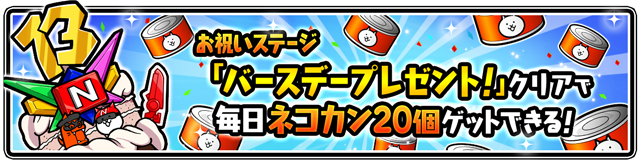 イベント期間中、毎日0時にステージが再登場!毎日クリアして、最大720個のネコカンを手に入れよう!
